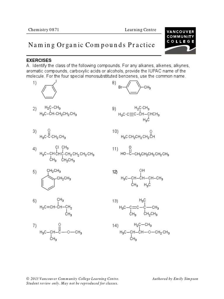 Naming Organic Compounds Worksheet With Answers / Naming Organic Compounds Worksheets By Ms Joelle Tpt /